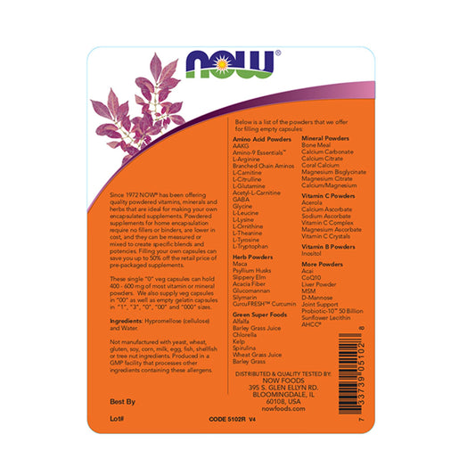 NOW Foods Empty Vegetarian Capsules Single "0"