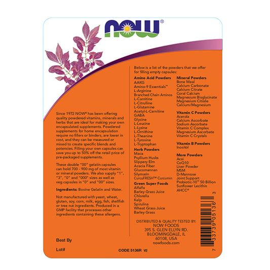 NOW Foods Empty Gelatin Capsules, Double "00"